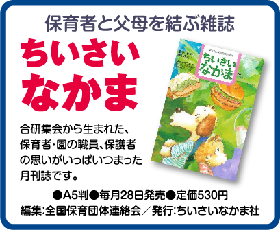 〈全国団体〉全国保育団体連絡会、全国障害者問題研究会、全国福祉保育労働組合、全日本民主医療機関連合会、全国学童保育連絡協議会、全国幼年教育研究協議会、全国保育問題研究協議会、全国子どもと保育の明日を語る連絡会、日本医療労働組合連合会、日本自治体労働組合総連合、保育のうたごえ協議会、新日本婦人の会、赤ちゃんの急死を考える会、乳幼児の生活と教育研究会、全国民間保育園経営研究懇話会、全国小規模型保育連絡会、家庭的保育全国連絡協議会、子どもの発達と療育をまもる全国ネット 全国保育団体合同研究集会とは? 1969年からつづく合研集会は、保育者、保護者、研究者など子どもにかかわる人たちが創り、運営する集会です。ぜひいっしょに学び、交流しましょう。